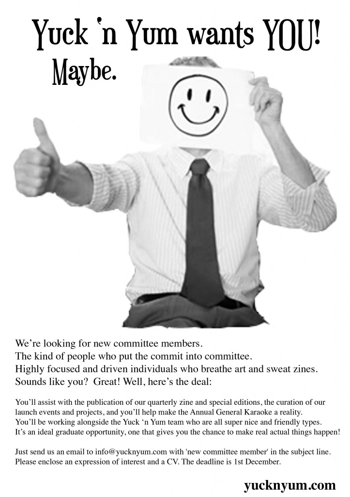 Just send us an email at info@yucknyum.org with ‘new committee member’ in the subject line. Please enclose an expression of interest and a CV. The deadline is 1st December.
